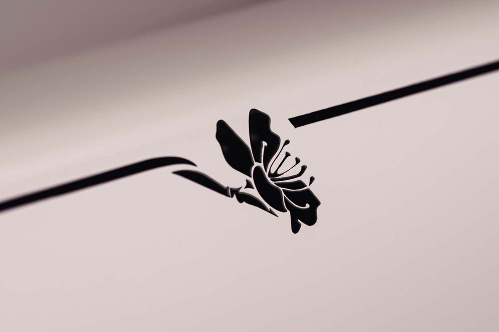U skladu sa Hanami temom, motiv padajućih latica nalazi se i na unutrašnjoj postavi Bespoke kišobrana, koji su diskretno smešteni unutar vrata automobila. Spoljašnjost takođe sadrži suptilan omaž temi – boja karoserije Crystal over Arctic White uključuje jedinstvenu ručno oslikanu Coachline liniju koja se sužava na sredini zadnjih vrata i završava sa motivom cveta trešnje, kao diskretna najava umetnosti koja se nalazi unutar automobila.