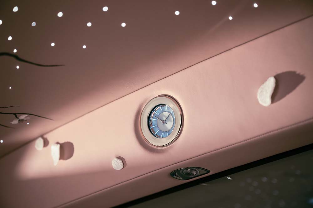 Po prvi put u nekom Rolls-Royce-u, enterijer je dopunjen trodimenzionalnim vezenim laticama trešnje. Ovi taktilni, skulpturalni detalji ukrašavaju pregradni zid, stvarajući upečatljiv kontrast u odnosu na klasičan vez latica na vratima.