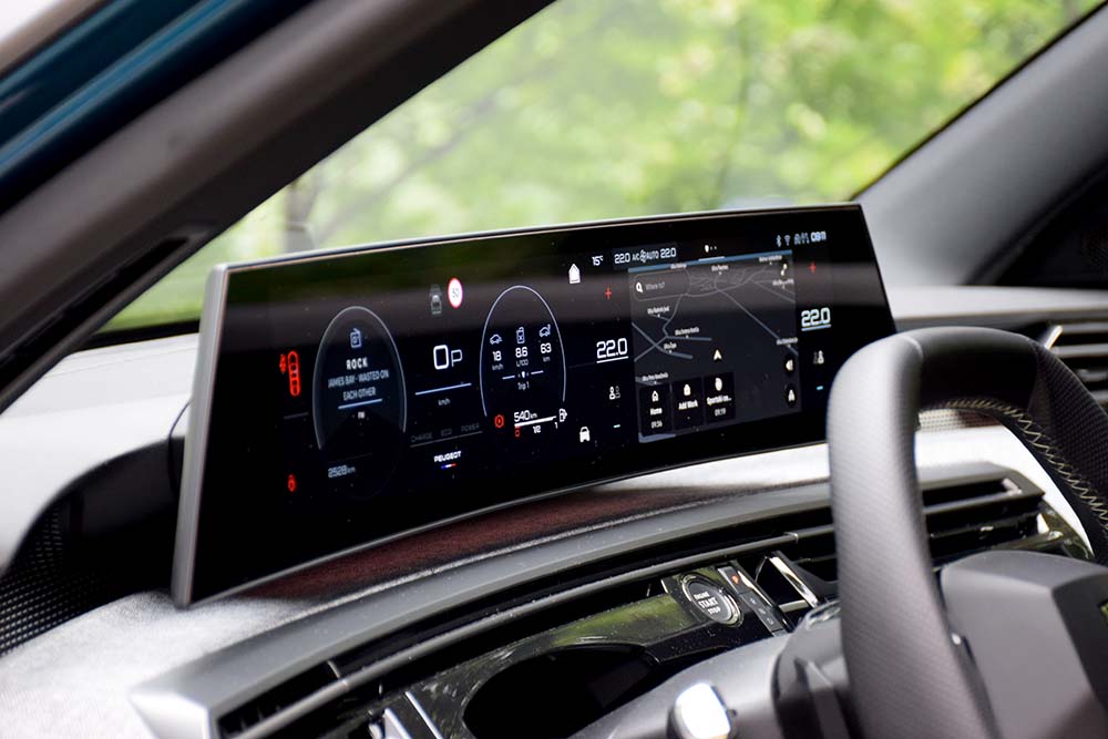 Kokpitom dominira ekran koji spaja instrumente i multimediju. Nalazi se unutar zakrivljenog panela koji je „okačen” sa zadnje strane, tako da izgleda kao da lebdi. Ono što posebno impresionira jeste da se unutar ovog panela nalazi jedan dugački ekran, a ne dva ekrana ispod zajedničkog stakla, kao kod sličnih rešenja, čak i onih sa premijum pečatom.