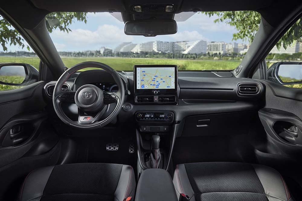 Unutrašnjost verzije Yaris GR SPORT je modernija, s jedinstvenim crvenim štepovima i naglašenim metalnosivim detaljima, a obogaćena je reljefnim logotipom GR SPORT na naslonima za glavu, čime je postignut čist i prefinjen izgled.