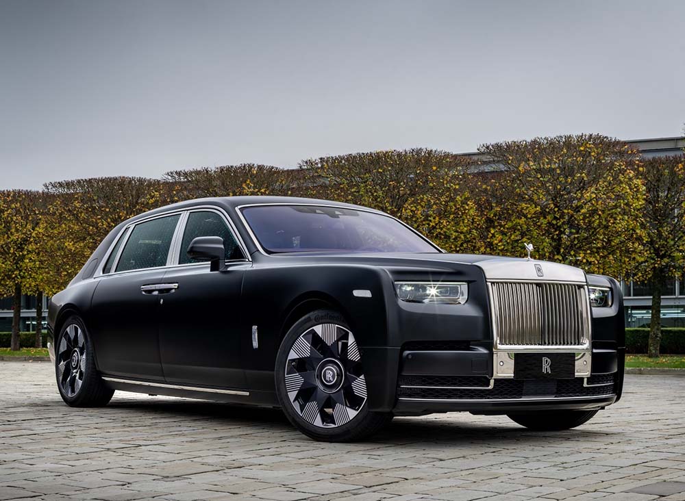 Kreirajući smelu suprotnost drami unutrašnjosti, ovaj Phantom Extended je završen u boji Iced Diamond Black, koja stvara prepoznatljiv satenski sjaj.