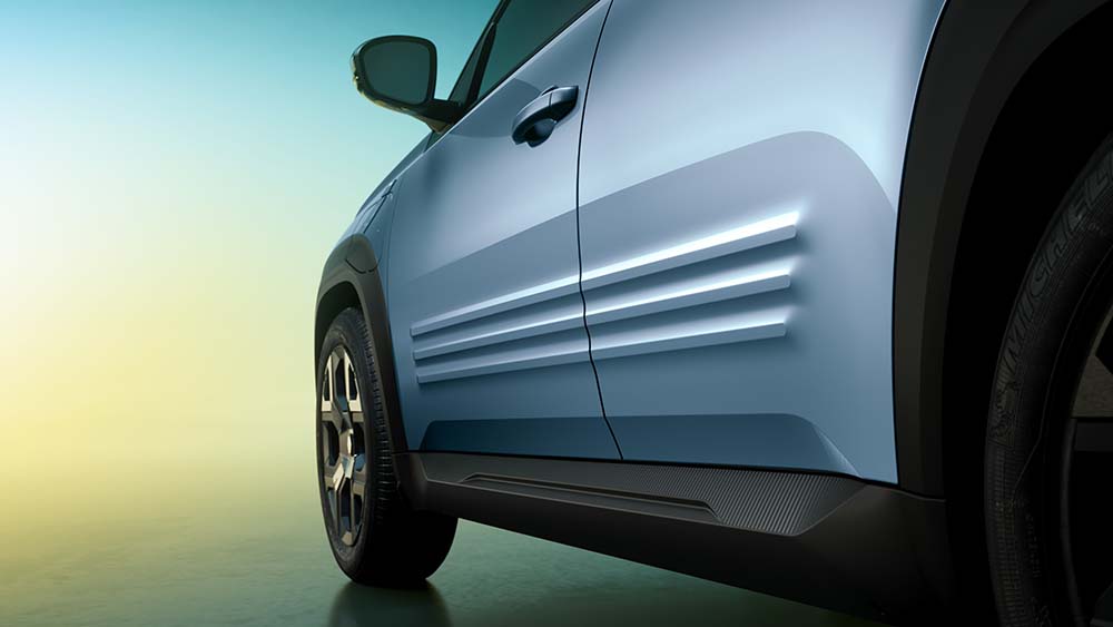 Ostale dizajnerske karakteristike koje su prenete uključuju odbojnike na prednjem i zadnjem braniku za dodatnu zaštitu, tri paralelne linije urezane u vrata, i opciju targa platnenog krova. Ako želite da date prioritet praktičnosti, novi Renault 4 dolazi i sa krovnim nosačima.